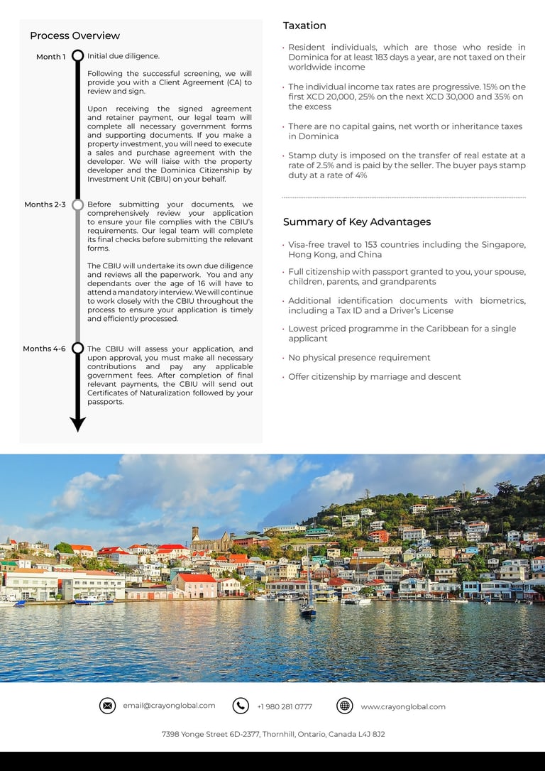 - No Residency Requirement: Applicants do not need to reside in Dominica before or after receiving citizenship.