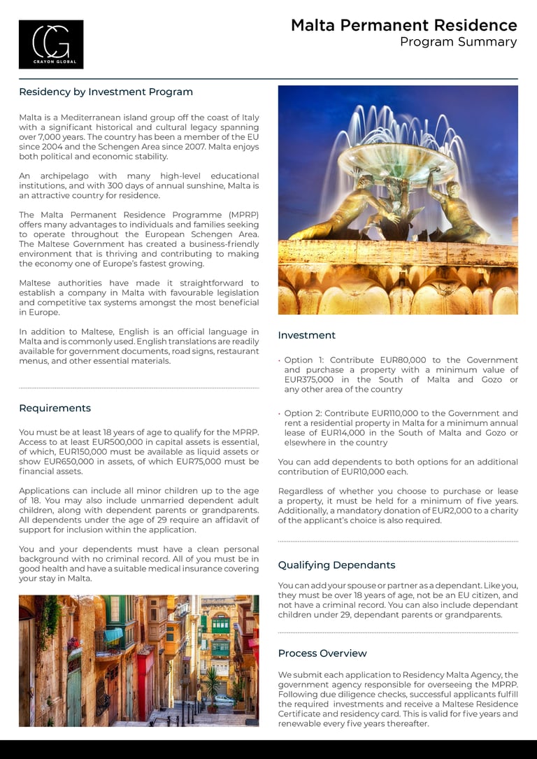 The Malta Permanent Residence Programme (MPRP)