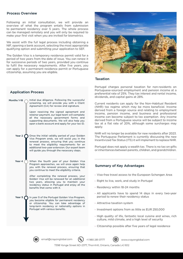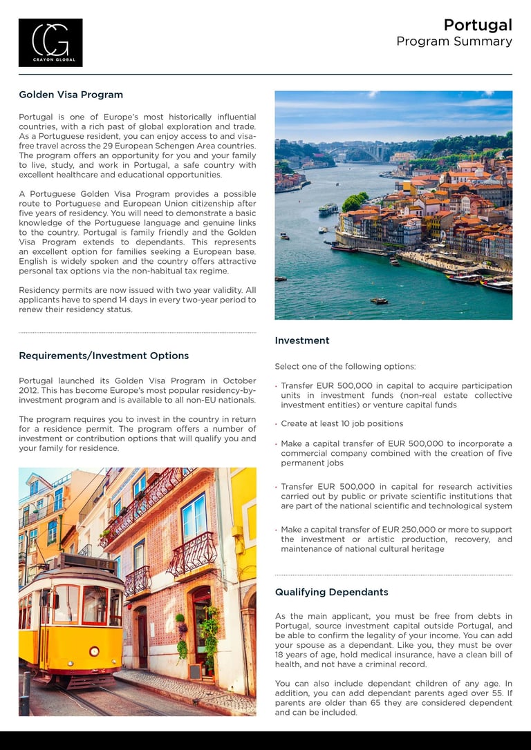The Portugal Golden Visa program stands out due to its numerous benefits: