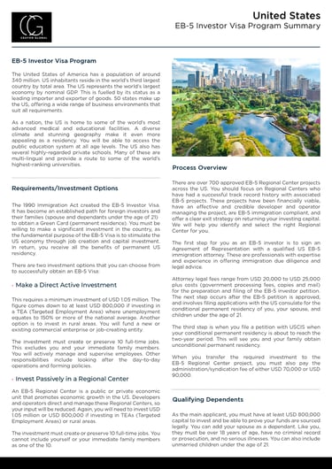 Choose an approved EB-5 project or establish your own new commercial enterprise.Prepare Documentation & Invest