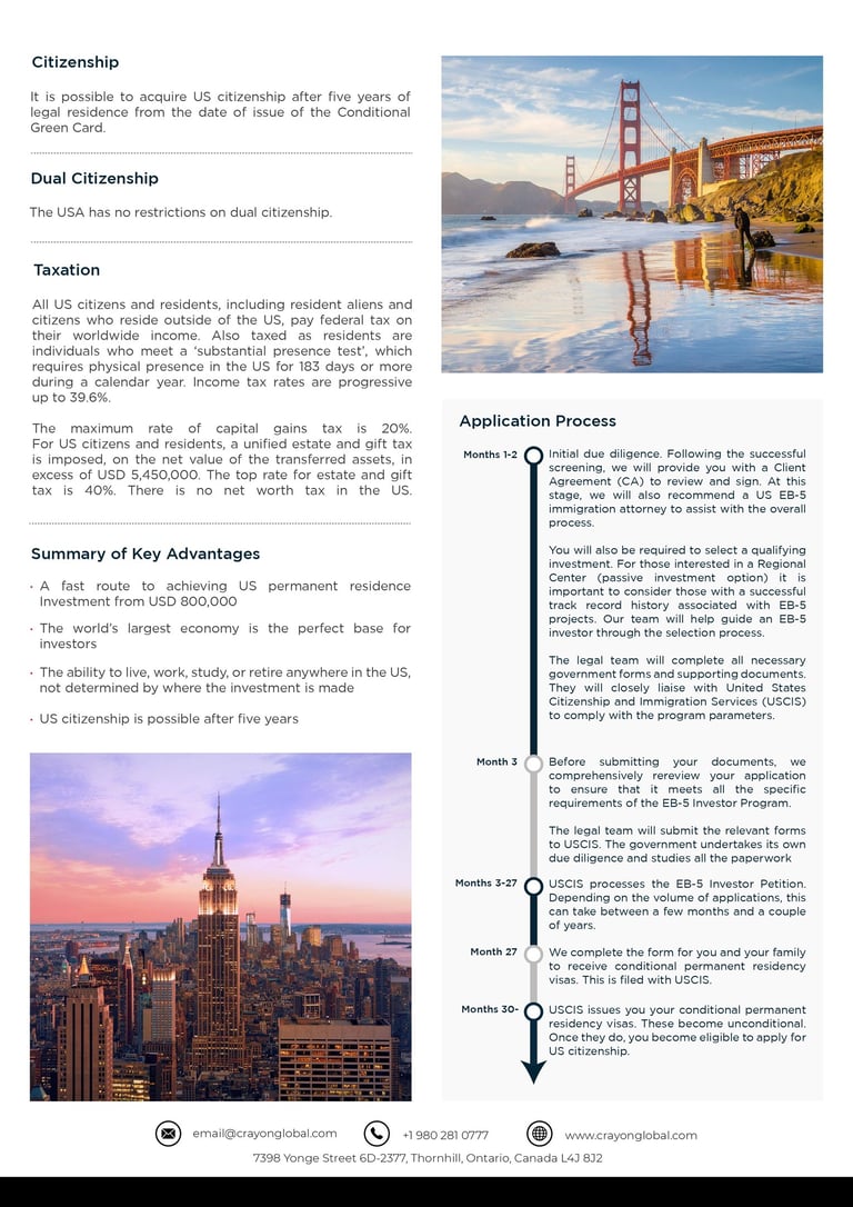 1. Direct Path to U.S. Permanent Residency: The EB-5 program offers a clear path to a Green Card, enabling the investor, spouse, and children under 21 to live, work, and study anywhere in the U.S.